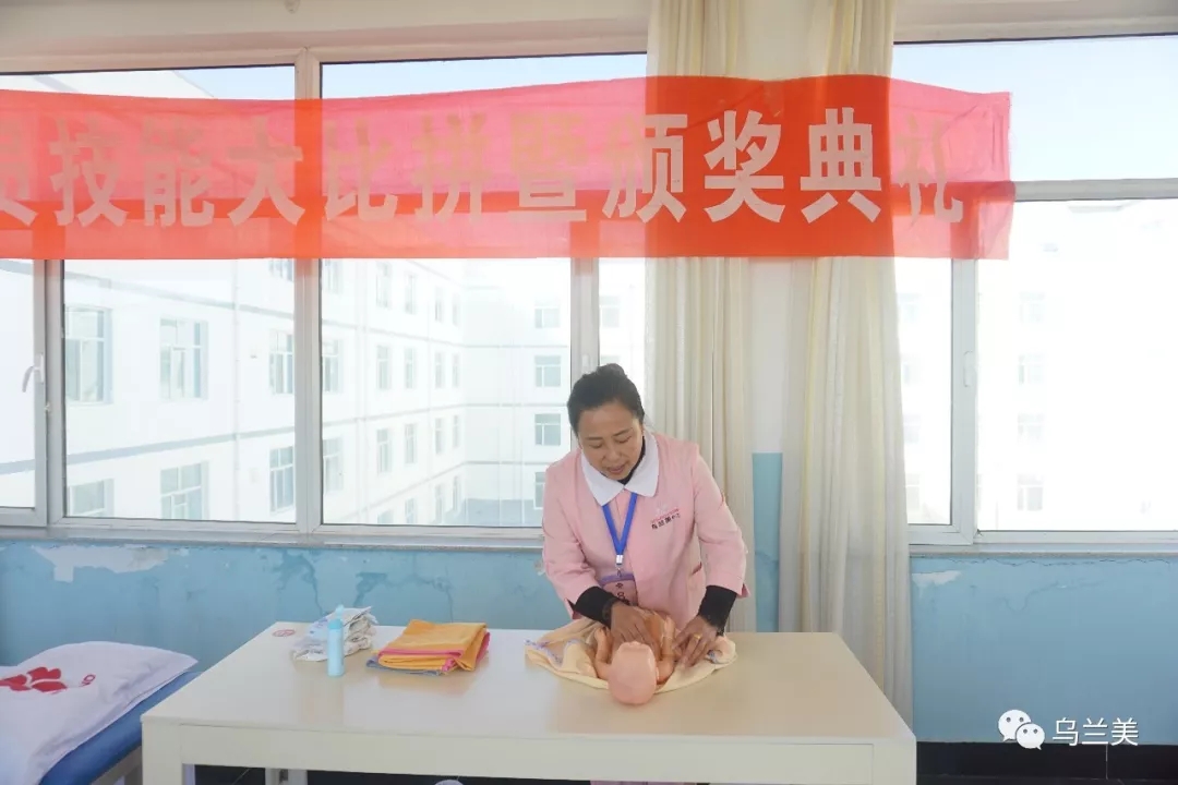 本次技能大比拼的主要比賽內容為:母嬰護理組的新生兒撫觸、產后綁腹帶;病人陪陪組的壓瘡護理、測脈搏及血壓。母嬰護理組8人,病人陪護組9人,共計17人參賽。